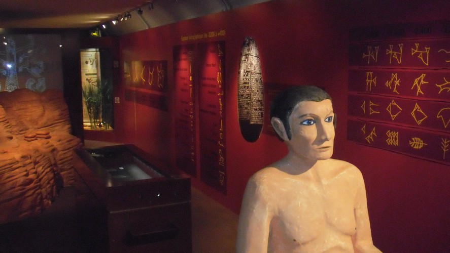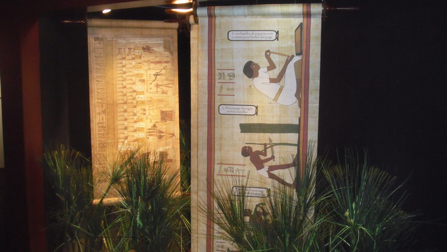 - des audioguides qu’il suffit d’approcher des cartels pour progresser dans l’histoire, scénarisée dans un dialogue entre le scribe égyptien (voix de Franck Ferrant) et la modernité : à mon sens une utilisation intelligente de la RFID.