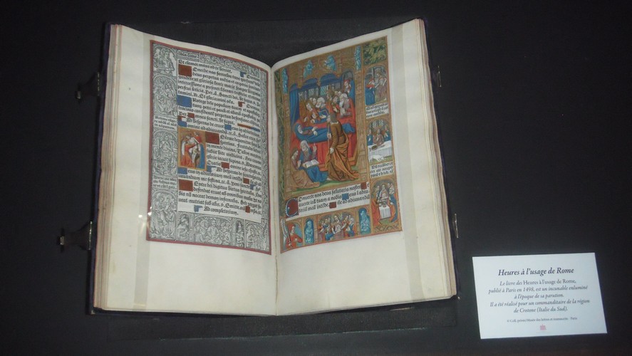 Honnêtement, je n’y suis pas allé pour apprendre quelque chose. Les premiers chapitres du métier de bibliothécaire (2010! 😉 ), ainsi que les deux tomes des découverte Gallimard (1, 2), couvrent le thème dans les grandes lignes. Mais j’étais curieux de voir comment un tel sujet pouvait être scénographié. Franck Ferrand, commissaire de cette exposition, y a consacré un numéro de son émission “Au cœur de l’histoire”, ce qui a titillé ma curiosité.