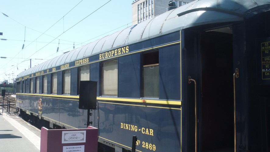 Des animations sont organisées autour de l’exposition, à la fois dans la gare (près de l’incontournable librairie Relay) et dans le train lui-même (programme). En particulier, deux voitures du mythique Orient Express ont été accrochée en queue du train, dans lesquels se déroulait une lecture publique quand j’y suis passé. J’avais déjà vu l’Orient Express à Venise (le terminus actuel, alors que l’original – celui d’Agatha Christie – allait jusqu’à Istanbul), mais je n’avais alors pas pu en voir l’intérieur. J’ai donc saisi l’occasion cette fois-ci !
