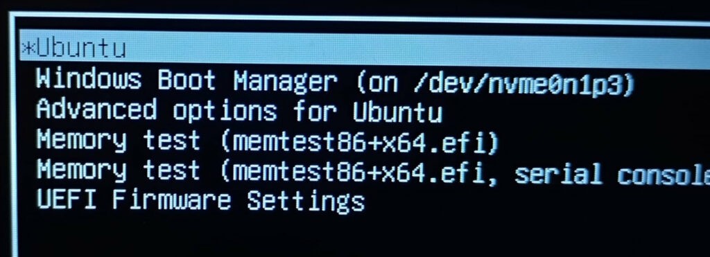 Dans le menu GRUB, choisir “Advanced options for Ubuntu”…