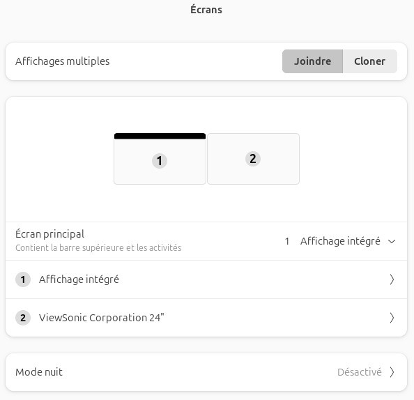 En revanche, le noyau 6.14.0-24 donne lui le même résultat que le 6.14.0-27 : Wayland, pas de second écran.
